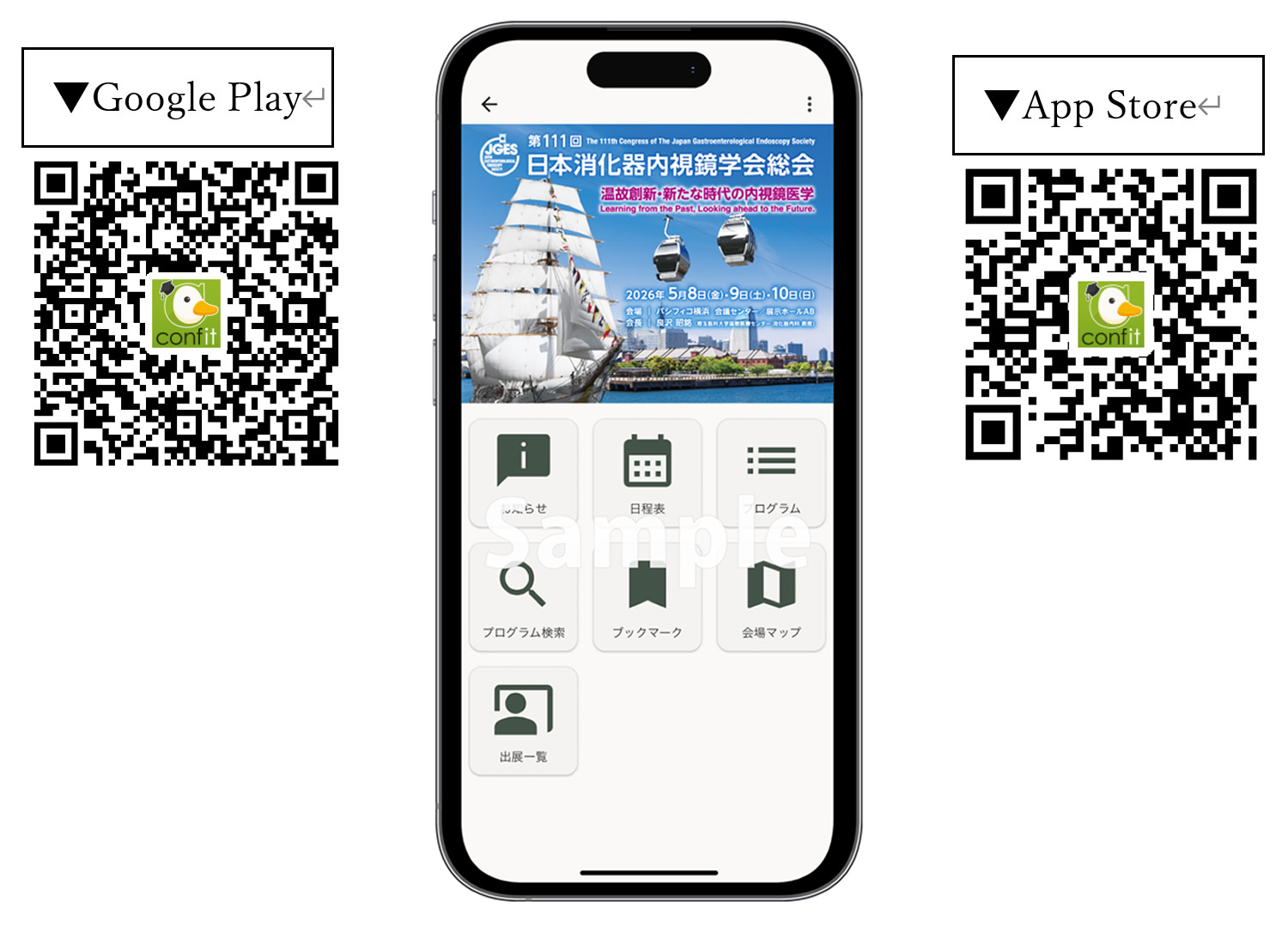 スマートフォンやタブレットにダウンロードすることで、 抄録の検索・閲覧やタイムテーブルやプログラム確認、ブックマークができるサービスをご利用いただけます。(5月初旬公開予定)